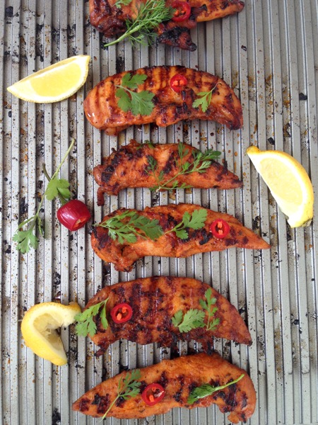 Who’s in for some 6 minute sticky apricot glazed chicken ?! Yes kids I said 6 minutes and no smoke in the house. I am really stoked about this one, and I partnered up with iPinium -family own business from Sweden to bring you this incredibly fast and delicious weeknight meal, chicken tenderloin grilled in the oven on the revolutionary iPinium grill plate.