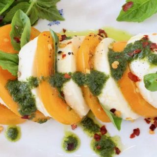 - Drizzle over sliced tomatoes and mozzarella cheese. Can be store in the refrigerator for a few days, and remember to bring to room temperature for about half hour before serving.