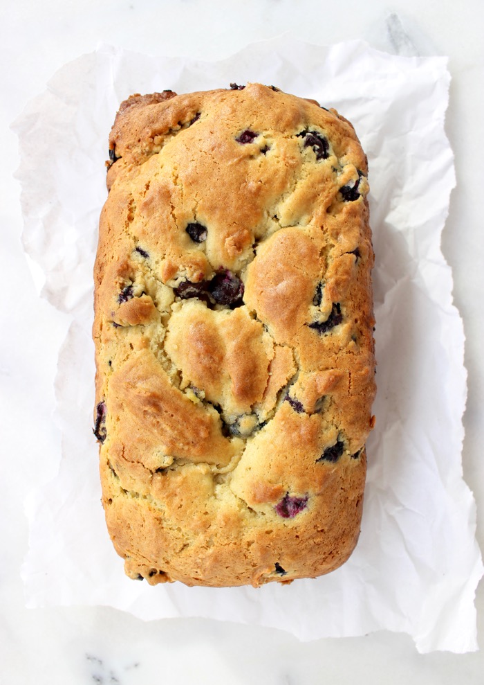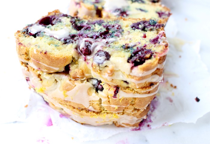 • Using the whisk drizzle the glaze on top of the blueberry bread and immediately sprinkle with the remaining lemon zest. Slice with a serrated knife and enjoy with your morning coffee.