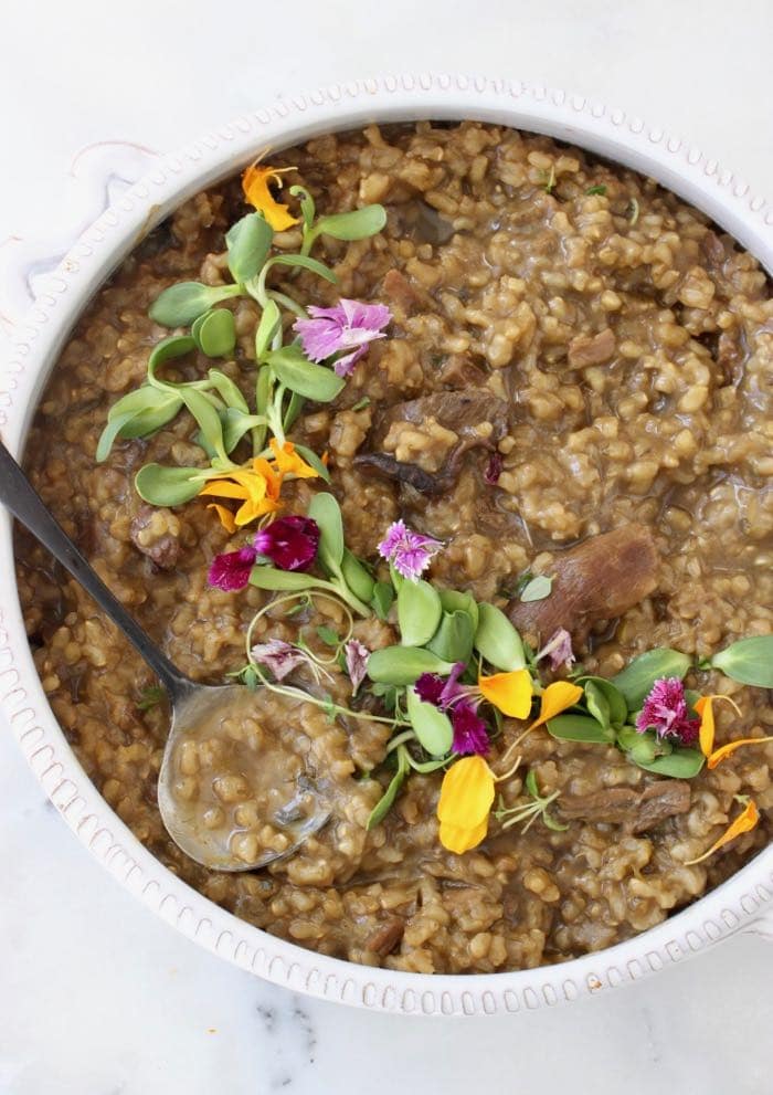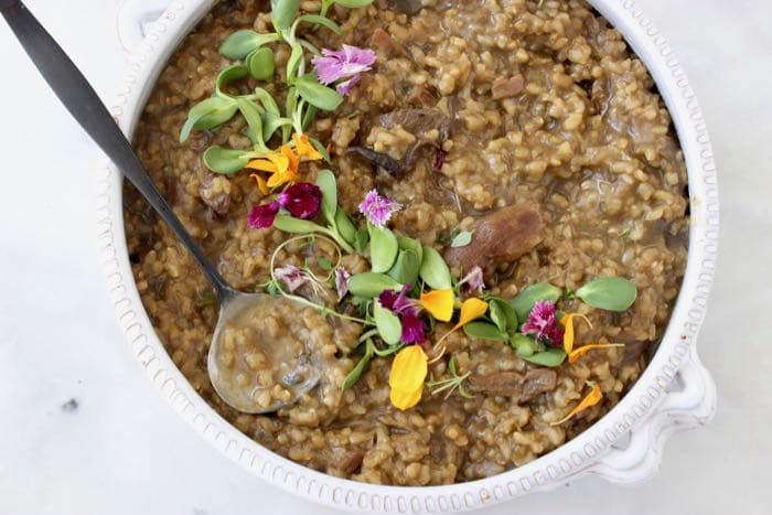 There’s lots of base flavor from the leeks and pure perfection from the porcini mushrooms and thyme broth. I would definitely serve this piled up high with lots of seasonal roasted goodies like butternut squash, sweet potato rounds, heirloom carrots and other root vegetables.