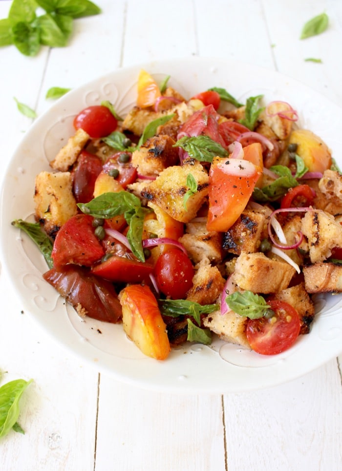 - Add Ins – To build on the classic concept of Panzanella you can surely add in some of our fresh and healthy homemade mozzarella, marinated artichoke hearts or these Italian roasted peppers. You could even throw in some salty black olives alongside vegan feta, sautéed mushrooms, roasted vegetables, and peppery arugula. To color outside the lines go for juicy summer yellow peaches and even avocado, but for the sake of decency: please no corn!