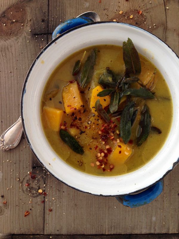So as you look at this bowl of soup which actually belonged to my grandpa, the way the light hit it that afternoon, maybe imagine the smell of the sage crisping up in a little organic butter on the stove top, and get a feel of how simple and rustic life was for us… And who knows maybe you’d like to recreate a little of that magic in your own kitchen…