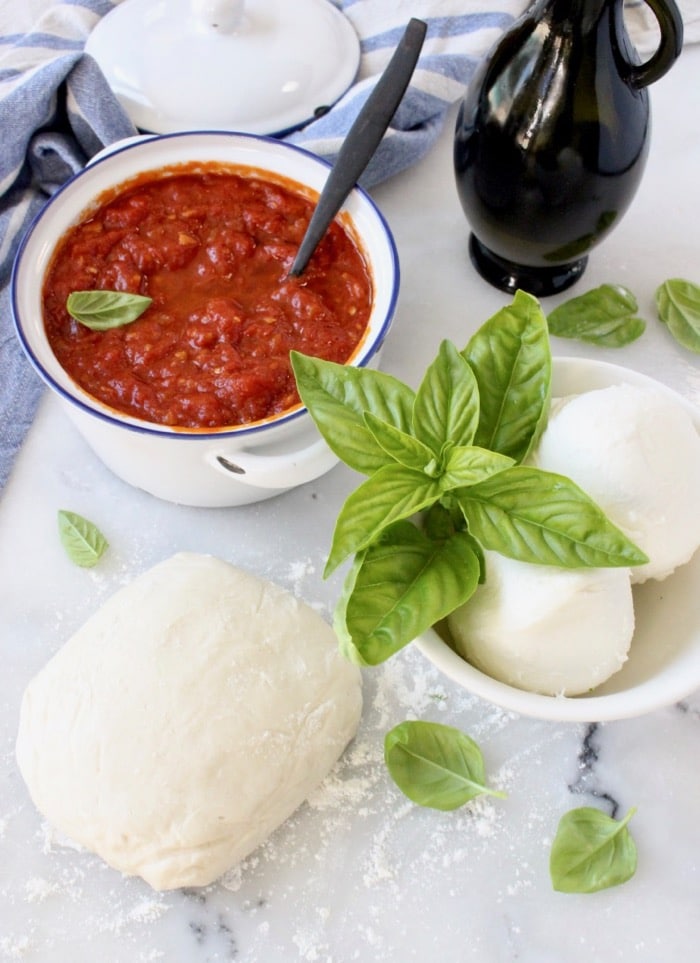 There’s only one right way to go here and that is with Buffalo Mozzarella forever and ever! Really important to dry it well on paper towels before adding to your pizza so it won’t make your pie soggy.