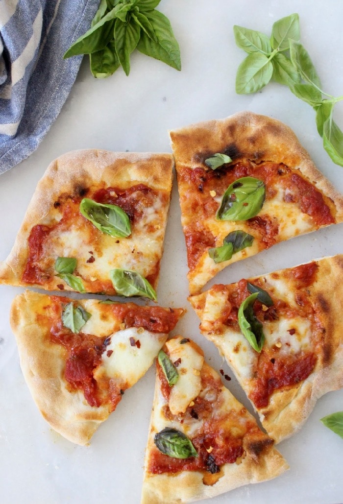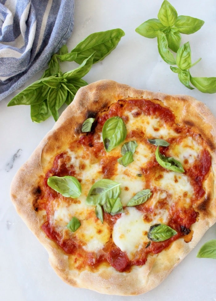 How to make an easy, authentic pizza Margherita at home, from scratch with just a few simple ingredients and a pizza stone. Anyone can make this, I promise! Video below!