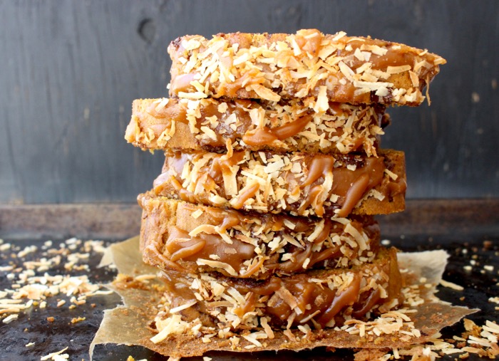 9. The Best Pumpkin Bread: Fluffy pumpkin bread covered in drizzles of caramel, chocolate and coconut, like a Samoa cookie in bread form this dessert screams Thanksgiving and is not to be missed.