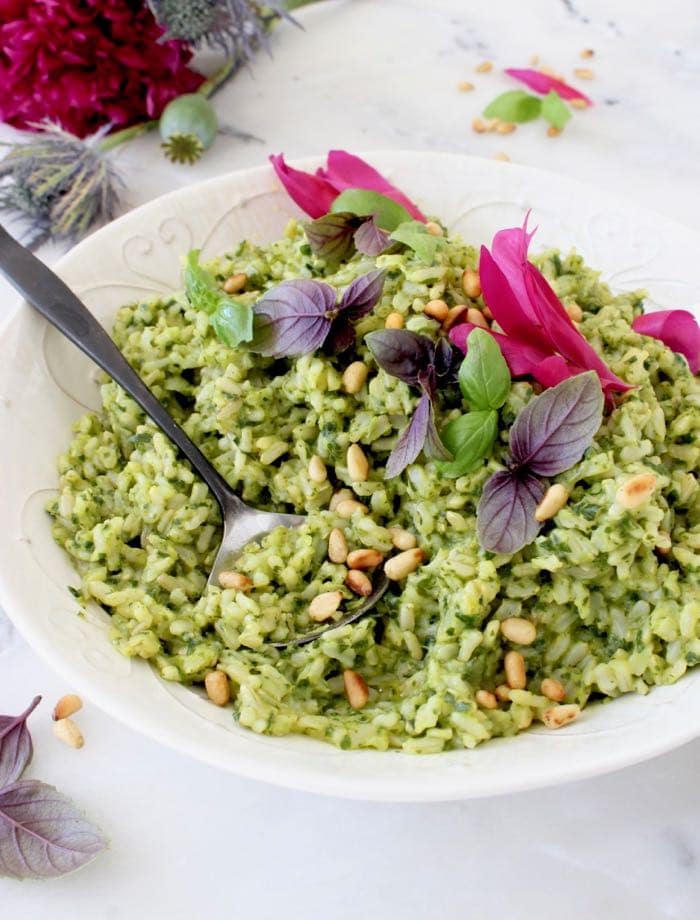 20. Spinach Brown Rice: whole grain brown rice is dressed in an exotic green sauce made of spinach, kale, scallions and mango.