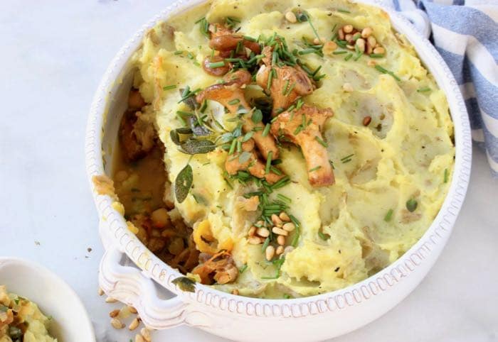 2. Mushroom Shepherd’s Pie from the VeggieSociety : Chanterelle mushrooms, bell peppers and chickpeas topped with a creamy layer of mashed potatoes and more mushrooms. Can be made ahead and warmed up in the oven before your guests arrive.