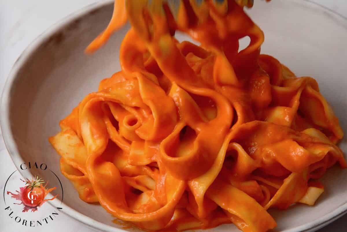 - On Storage – Store your sauce separate from the pasta. It keeps well in the fridge for up to a week and reheats beautifully in a skillet on the stove top. Give it a whisk to emulsify it again during reheating. For longer term you could freeze individual portions or make a double batch for canning in which case make sure to follow all safety guidelines for properly preserving tomato products.