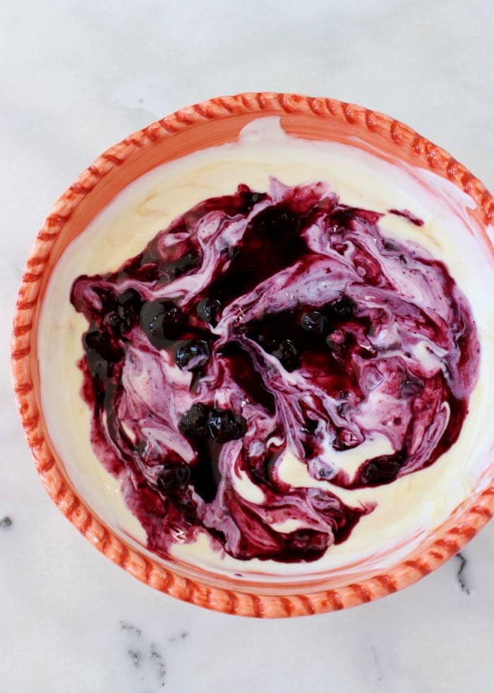 - Add the blueberry sauce and mix well.