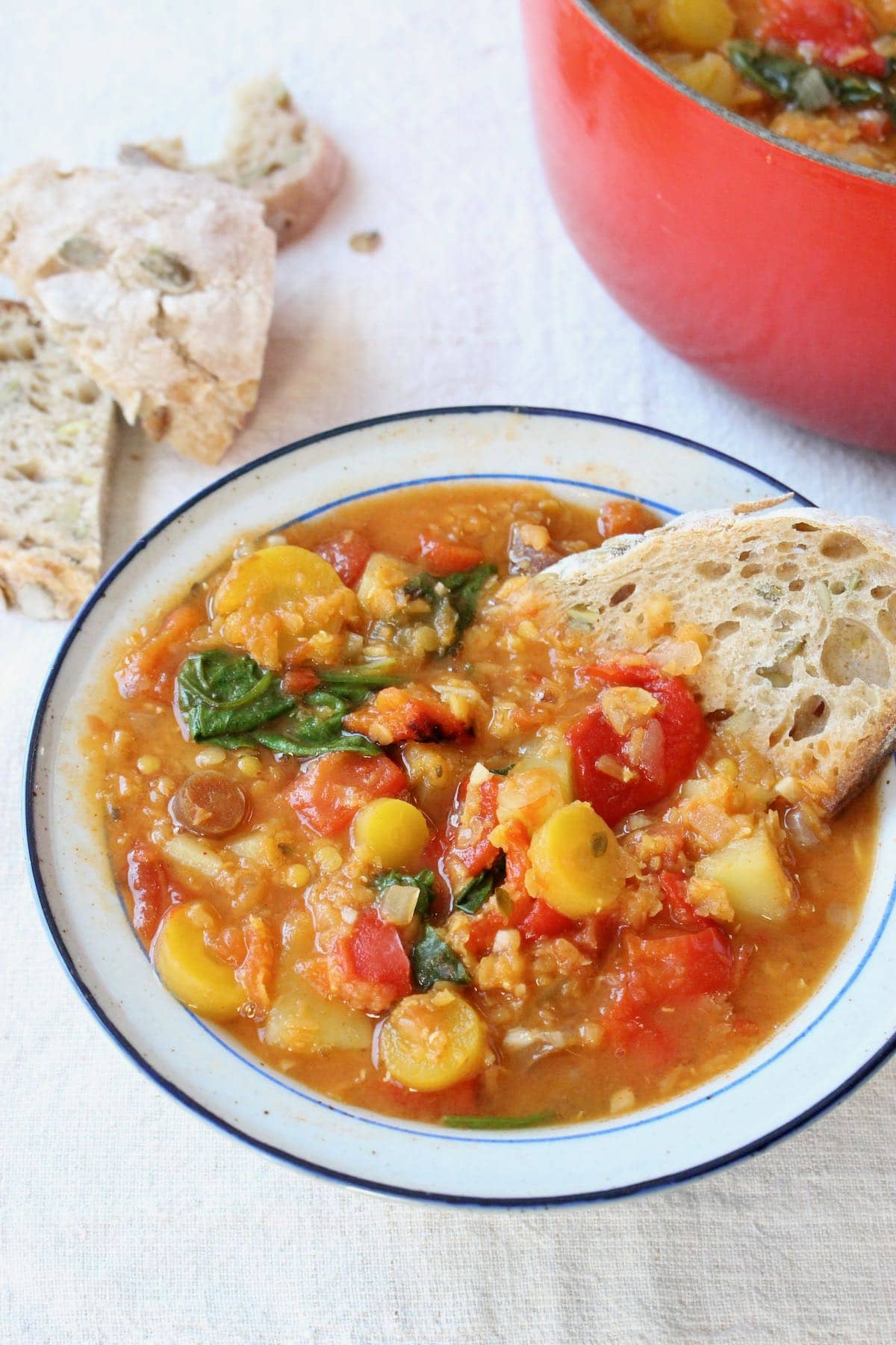 There is no ham hock and no soaking of lentils required for this divine potato lentil soup. Everything goes in one pot like magic for a hearty, filling, simple, quick and easy to make vegan soup.