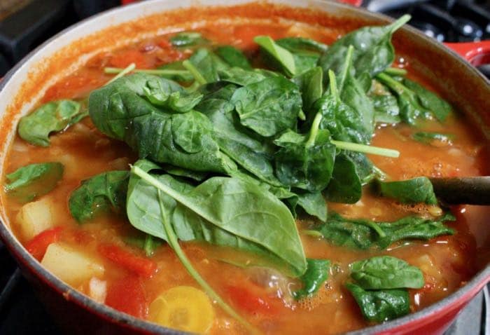 You can go for a touch of cumin here, or leave it out entirely If that spice seems overpowering to you or simply don’t fancy it. There’s already so much savory flavor happening here from the roasted pepper base that you won’t miss a thing. I also like to keep a rustic texture of the lentils here, so no need for blending anything either.