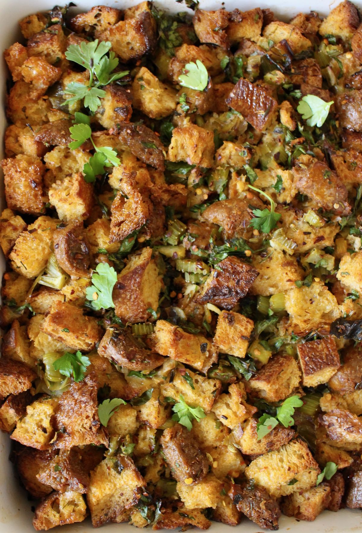 You’ll fall in love with this easy, comforting classic Italian bread stuffing from scratch. I like to think of it like a vegetable loaded festive panzanella; savory, hearty, filling, and irresistible. Great with mashed potatoes, green bean casserole, creamed spinach and a fresh tomato cucumber salad, this is without a doubt a most favorite holiday side dish.
