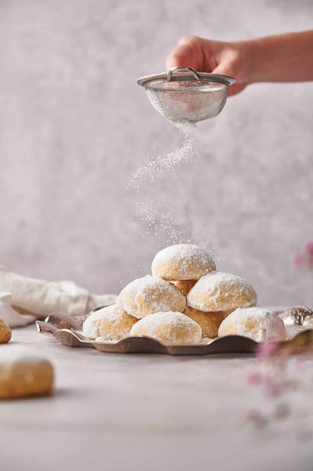 - Powder Sugar – Make sure to coat your cookies while still warm so the sugar sticks nicely.