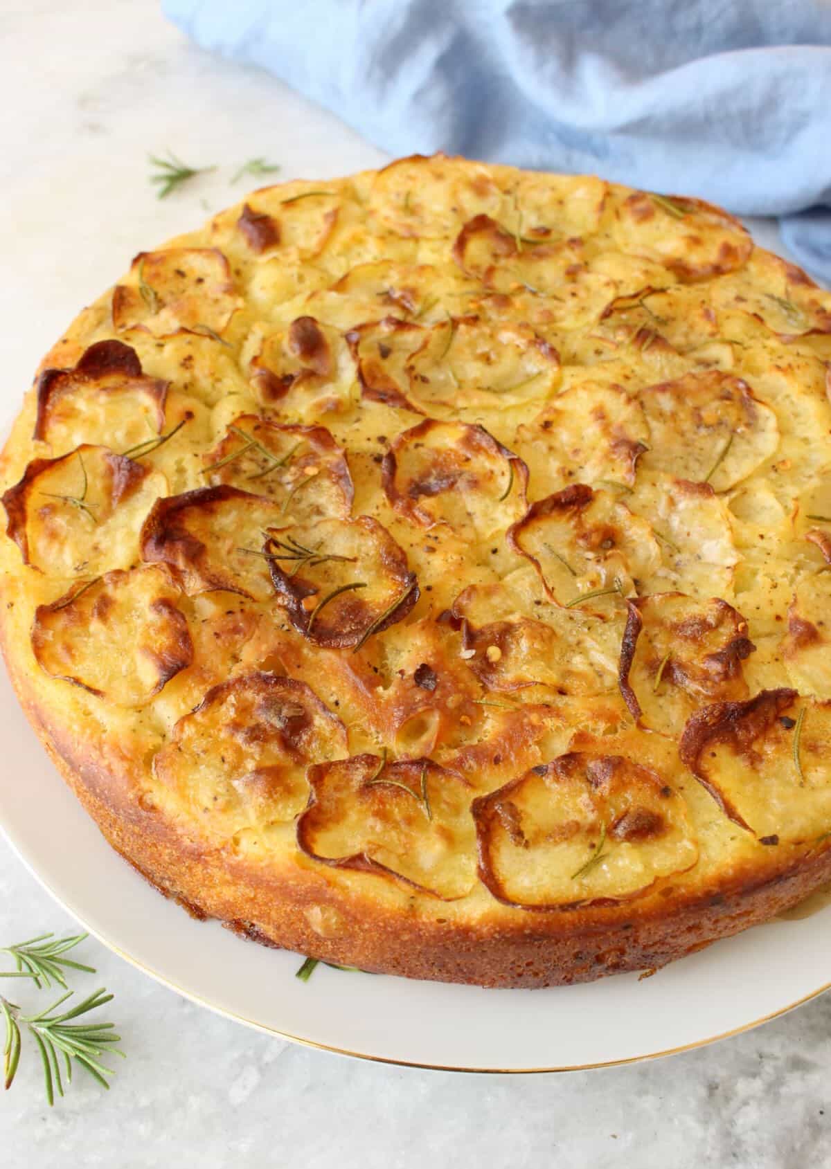 This is a fabulous focaccia. However it’s not a dry crumb dough if anyone is expecting that. The crispy thin slices of potato topping together with the rosemary is the cherry on top. I love the idea of using my spring form pan, make everything so smooth and easy to work with. A real keeper and a unique twist on all the other focaccia recipes out there. Thank s for sharing.