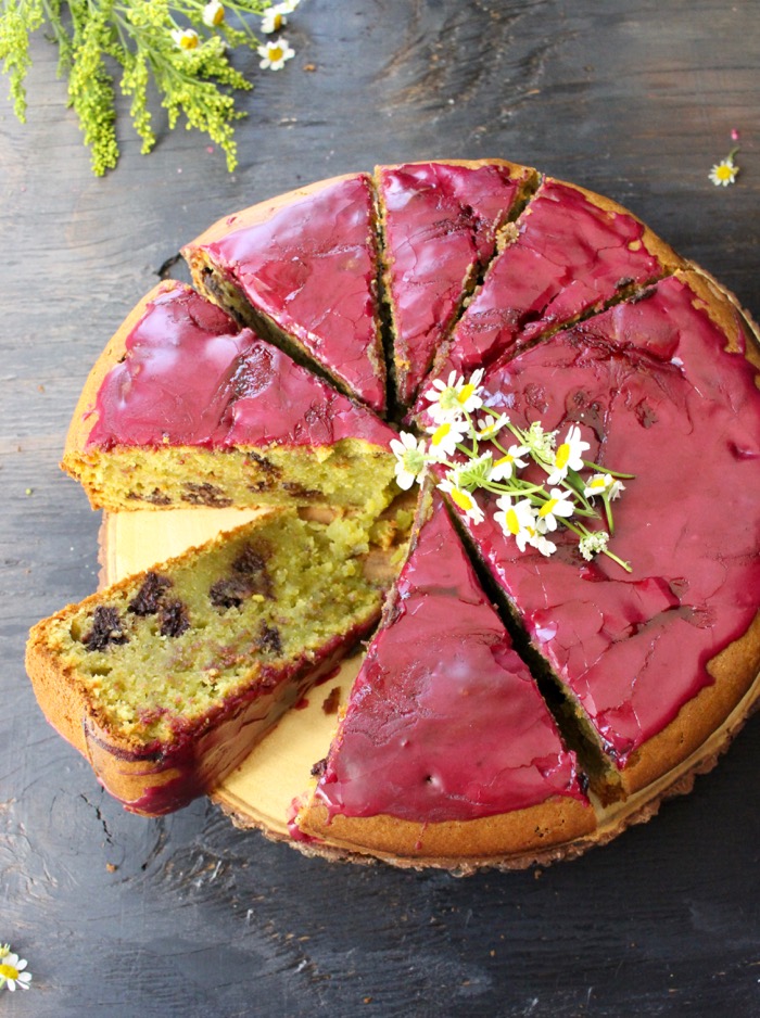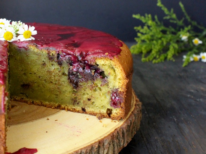 Avocado Cake with Blueberry Glaze