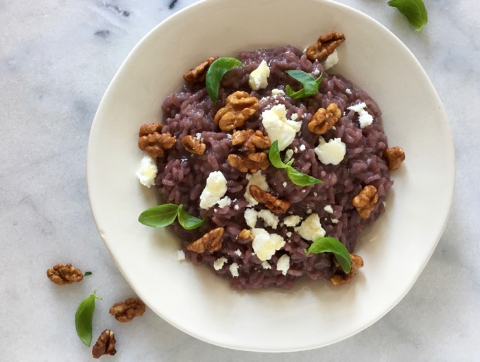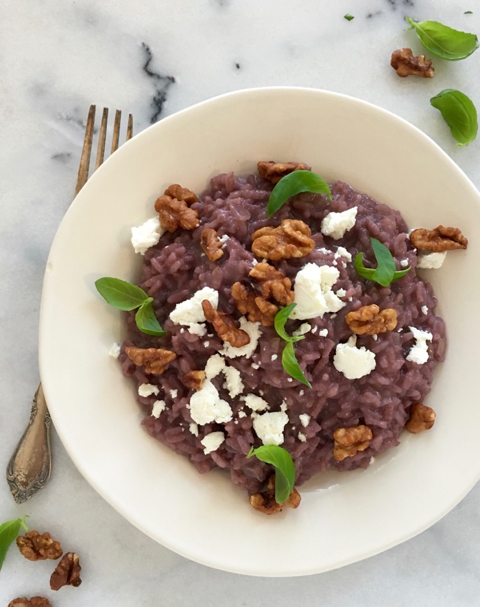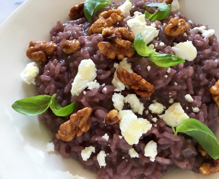Red Wine Risotto Recipe with Goat Cheese & Candied Walnuts