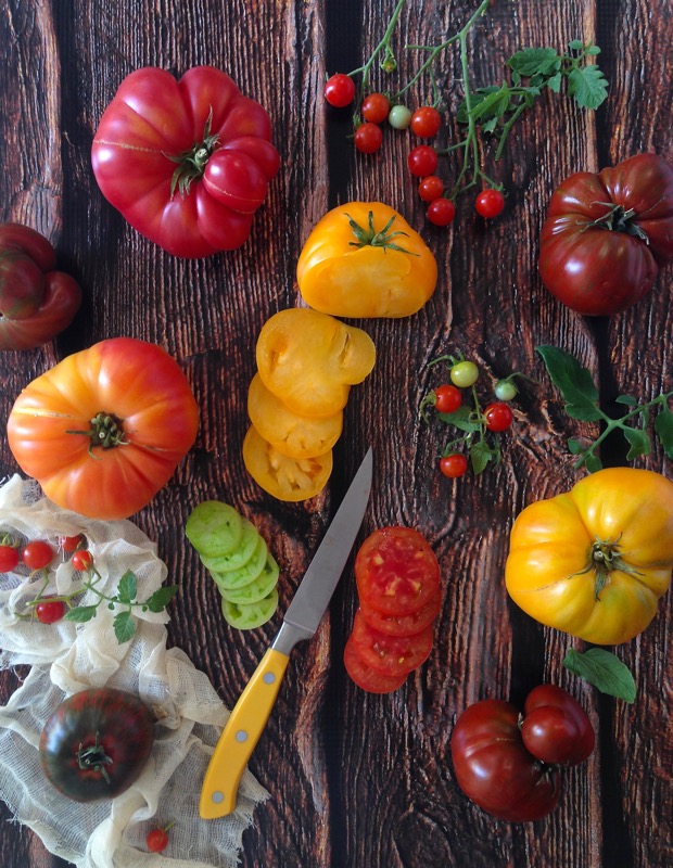 I really can not help myself with all those insanely beautiful heirloom tomatoes around me. You do know how me and tomatoes have had a thing for a very long time.