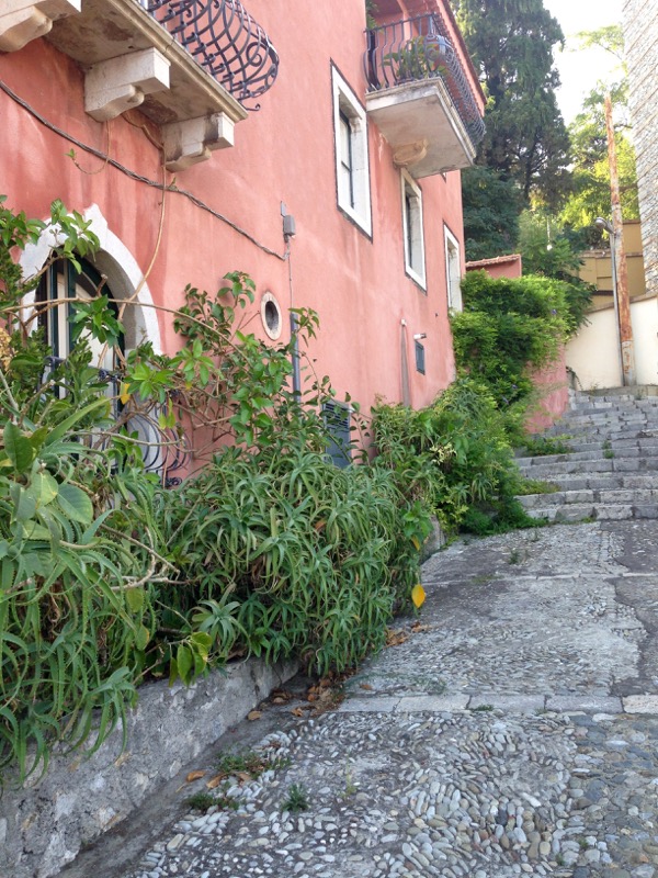 I told you before about al Giardino, our favorite local little restaurant in Taormina Sicily, where they make you hand-made pasta and toss it in some of this Sicilian pistachio pesto. Those long steps from our villa leading up to their tables under the pergola were absolutely worth it.