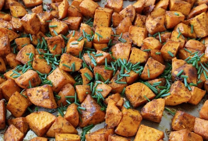 - 3 lb sweet potatoes - cut into 1 inch cubes