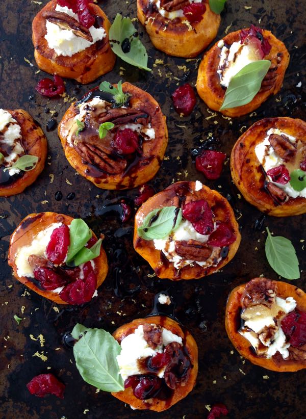 I have the best sweet potato rounds with goat cheese appetizer for us!
