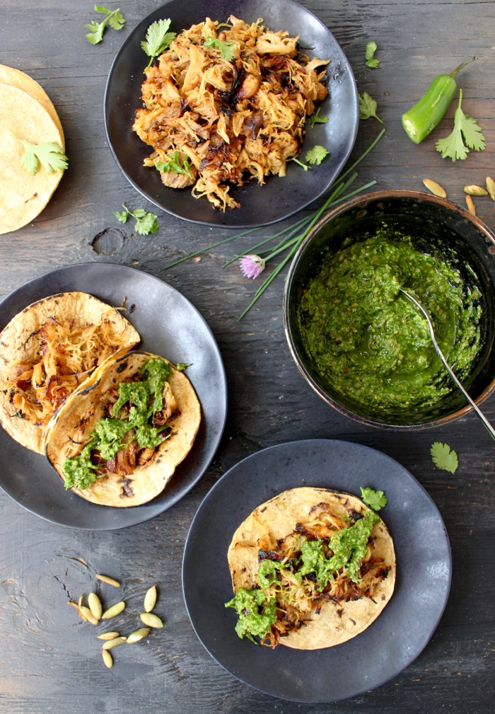 Tacos de Carnitas with Chive Pesto ( Carnitas Tacos Recipe )