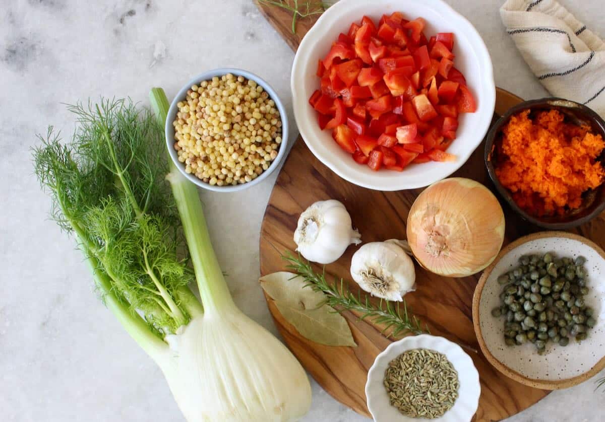 - Gluten Free – The fregola can be swapped for gluten free pasta of your choosing or replaced with diced potatoes, lentils and even butternut squash.
