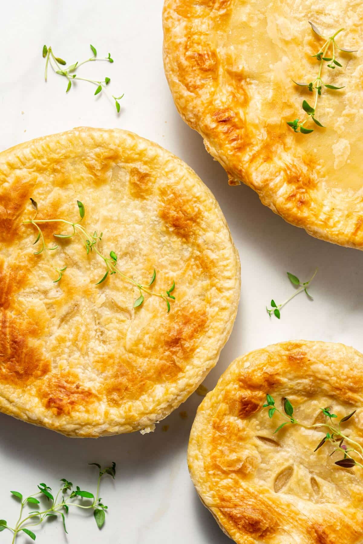 Pot pies are best served hot out of the oven while flaky and crispy and still hot in the center. However if you find yourself with leftovers they can be refrigerated up to 5 days or frozen for up to 4 months. Reheat in a 375″F oven for 25 minutes or so until hot and bubbly in the center.
