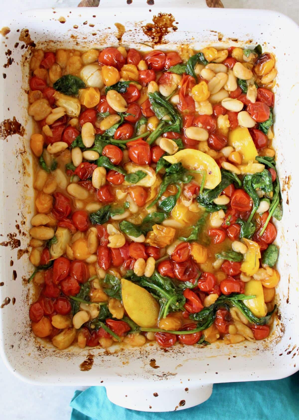 - Add the rinsed cannellini beans to the pan and give it a mix to coat. Bake another 5 minutes until the beans are heated through.14 oz can cannellini beans