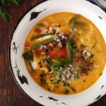 Adjust seasonings with the sea salt and black pepper and serve garnished with fresh herbs and edible flowers.