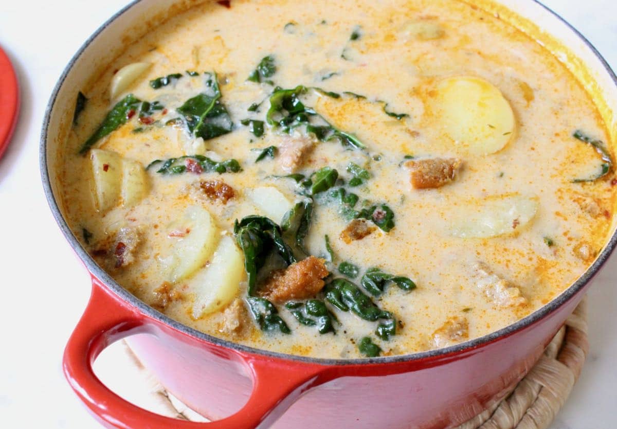 - Is this Zuppa Toscana recipe healthy? – I created this recipe specifically without meat as a healthier alternative to the fat and cholesterol loaded original so you can feel confident about making a better choice for your health without sacrificing flavor and comfort.